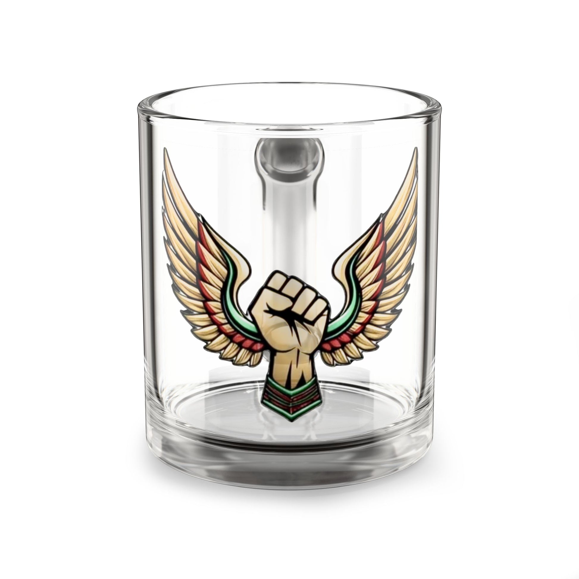 10oz Glass AOE Mug | Angel Wings Between Fist Design | Empowerment Drinkware | Afrocentric